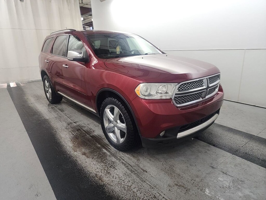 Deep Cherry Red Crystal Pearl exterior and Black Interior interior. Heated Leather Seats, DVD Entertainment System, 3rd Row Seat, Sunroof, Navigation, TECHNOLOGY GROUP, 4x4, Trailer Hitch, Alloy Wheels, 5.7L V8 VVT HEMI MULTI DISPLACEMENT... 6-SPEED AUTOMATIC TRANSMISSION, TRAILER TOW GROUP IV, REAR DVD ENTERTAINMENT CENTRE. CLICK NOW! KEY FEATURES INCLUDE Leather Seats, Third Row Seat, Navigation, Sunroof, 4x4, Power Liftgate, Rear Air, Heated Driver Seat, Heated Rear Seat, Cooled Driver Seat, Back-Up Camera, Premium Sound System, Satellite Radio, iPod/MP3 Input, Bluetooth® MP3 Player, Privacy Glass, Remote Trunk Release, Keyless Entry, Steering Wheel Controls. OPTION PACKAGES TECHNOLOGY GROUP adaptive speed control, blind spot & cross path detection, forward collision warning, REAR DVD ENTERTAINMENT CENTRE rear overhead console, rear seat video system, TRAILER TOW GROUP IV 220 amp alternator, 7/4 pin wiring harness, HD engine cooling, class IV hitch receiver, full size spare tire w/steel wheel, rear load levelling suspension, 6-SPEED AUTOMATIC TRANSMISSION, 5.7L V8 VVT HEMI MULTI DISPLACEMENT ENGINE 220-amp alternator, 230mm rear axle, 2-speed on demand transfer case, 3.45 axle ratio, dual exhaust w/bright tips, 7100# GVWR, HD engine cooling. Dodge Citadel with Deep Cherry Red Crystal Pearl exterior and Black Interior interior features a 8 Cylinder Engine with 290 HP at 6400 RPM*. EXPERTS ARE SAYING CarAndDriver.com explains For its latest generation, the three-row Durango exchanged its truckish body-on-frame platform for the Jeep Grand Cherokees carlike unibody structure.. Approx. Original Base Sticker Price: $42,300*. .