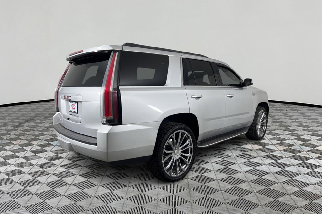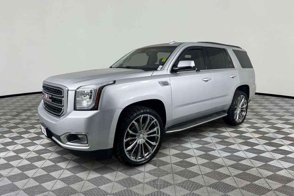 Third Row Seat, WiFi Hotspot, Dual Zone A/C, Remote Engine Start, Onboard Communications System, Premium Sound System, Running Boards, Back-Up Camera, 4x4, Rear Air, AUDIO SYSTEM, 8 DIAGONAL COLOR TOUCH... WHEELS, 20 X 9 (50.8 CM X 22.9 CM) POLISHED ALUMINUM, SUSPENSION PACKAGE, STANDARD, DRIVER ALERT PACKAGE, WHEELS, 20 X 9 (50.8 CM X 22.9 CM).. CONVENIENCE PACKAGE, TRANSMISSION, 6-SPEED AUTOMATIC, ELEC... ENGINE, 5.3L ECOTEC3 V8, Trailer Hitch CLICK ME! KEY FEATURES INCLUDE Third Row Seat, 4x4, Rear Air, Back-Up Camera, Running Boards, Premium Sound System, Onboard Communications System, Trailer Hitch, Remote Engine Start, Dual Zone A/C, WiFi Hotspot Keyless Entry, Steering Wheel Controls, Electronic Stability Control, Heated Mirrors, Bucket Seats. OPTION PACKAGES WHEELS, 20 X 9 (50.8 CM X 22.9 CM) POLISHED ALUMINUM, CONVENIENCE PACKAGE includes (DD8) inside rearview auto-dimming mirror, (JF4) power-adjustable pedals, (TB5) rear power liftgate and (UG1) universal home remote, DRIVER ALERT PACKAGE includes Forward Collision Alert, Lane Departure Warning and Safety Alert Seat, AUDIO SYSTEM, 8 DIAGONAL COLOR TOUCH SCREEN WITH INTELLILINK includes New text message alerts and Siri Eyes Free functionality through voice command, AM/FM/SiriusXM/HD with USB ports, auxiliary jack, SD card slot, Bluetooth® streaming audio for music and most phones, hands-free smartphone integration, Pandora Internet radio and voice-activated technology for radio and phone, and an articulating screen with hidden storage. Includes 5 USB ports, 1 auxiliary jack and 1 SD card reader (STD), ENGINE, 5.3L ECOTEC3 V8 with Active Fuel Management, Direct Injection and Variable Valve Timing, includes aluminum block construction (355 hp [265 kW] @ 5600 rpm, 383 lb-ft of torque [518 N-m] @ 4100 rpm) (STD), TRANSMISSION, 6-SPEED AUTOMATIC, ELECTRONICALLY CONTROLLED with overdrive, tow/haul mode and tap up/tap down shifting (STD), SUSPENSION PACKAGE, STANDARD Increased capacity, Premium Smooth Ride with Air leveler. GMC SLE with Quicksilver Metallic exterior and Jet Black interior features a 8 Cylinder Engine with 355 HP at 5600 RPM*. EXPERTS CONCLUDE Edmunds.com explains Materials are of a high quality, and the gauge clusters crisp graphics are a snap to read day or night. The large, central infotainment display is intuitive to navigate and its graphics/pictograms are simple and easily interpreted.. Approx. Original Base Sticker Price: $50,700*. .