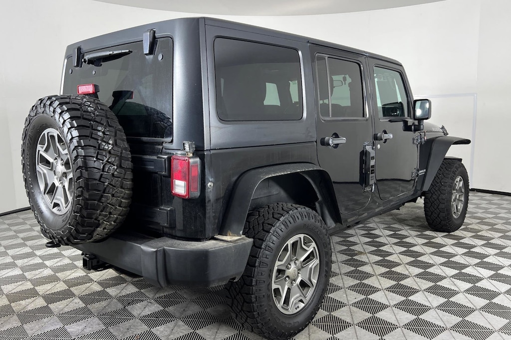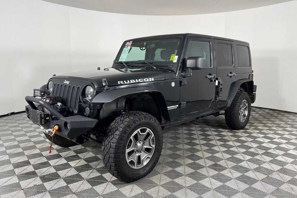 Black exterior and Black Interior interior. Heated Seats, iPod/MP3 Input, Premium Sound System, 4x4, Alloy Wheels, BLACK FREEDOM TOP 3-PIECE HARDTOP, HEATED FRONT SEATS, 3.6L V6 ENGINE, 6-SPEED MANUAL TRANSMISSION, SIRIUS SATELLITE RADIO. CLICK ME! KEY FEATURES INCLUDE 4x4, Premium Sound System, iPod/MP3 Input, Aluminum Wheels. MP3 Player, Keyless Entry, Privacy Glass, Child Safety Locks, Steering Wheel Controls. OPTION PACKAGES BLACK FREEDOM TOP 3-PIECE HARDTOP rear window wiper/washer & defroster, freedom panel storage bag, HEATED FRONT SEATS, 6-SPEED MANUAL TRANSMISSION (STD), 3.6L V6 ENGINE variable valve timing (VVT) (STD), SIRIUS SATELLITE RADIO. Jeep Rubicon with Black exterior and Black Interior interior features a V6 Cylinder Engine with 285 HP at 6400 RPM*. EXPERTS CONCLUDE Though more civilized than ever, the 2012 Jeep Wrangler remains a no-nonsense American icon. Its quirky character and unique off-road abilities continue to hold appeal. -Edmunds.com. EXCELLENT VALUE Reduced from $18,995. Approx. Original Base Sticker Price: $33,800*. .