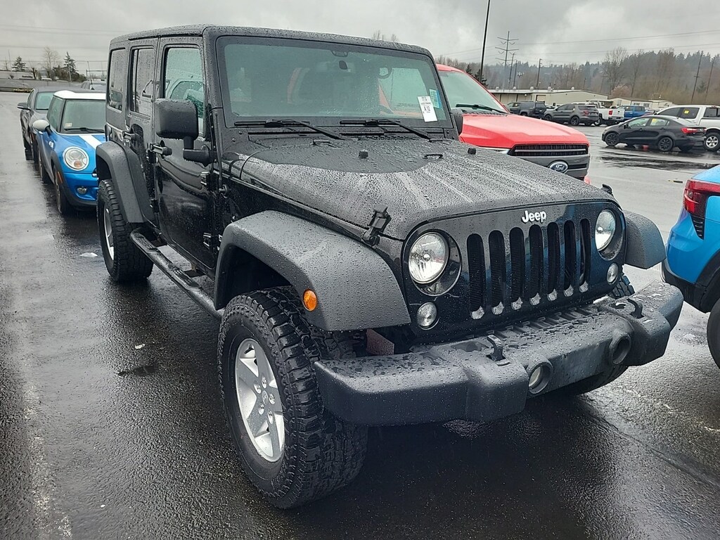 Sport trim, Black Clearcoat exterior and Black interior. Brake Actuated Limited Slip Differential, CD Player, iPod/MP3 Input, 4x4, Hitch, ENGINE: 3.6L V6 24V VVT, TRANSMISSION: 6-SPEED MANUAL (NSG370)... SUPPLEMENTAL FRONT SEAT SIDE AIR BAGS... TRAILER TOW GROUP, QUICK ORDER PACKAGE 23S, BLACK 3-PIECE HARD TOP. READ MORE! KEY FEATURES INCLUDE 4x4, iPod/MP3 Input, CD Player, Brake Actuated Limited Slip Differential. MP3 Player, Steering Wheel Controls, Child Safety Locks, Rollover Protection System, Electronic Stability Control. OPTION PACKAGES QUICK ORDER PACKAGE 23S Engine: 3.6L V6 24V VVT, Transmission: 6-Speed Manual (NSG370), Auto Dim Mirror w/Reading Lamp, Tires: P255/75R17 OWL On/Off Road, Wheels: 17 x 7.5 Aluminum, Leather Wrapped Steering Wheel, Chrome/Leather Wrapped Shift Knob, Power Convenience Group, Front 1-Touch Down Power Windows, Security Alarm, Power Heated Mirrors, Power Locks, Remote Keyless Entry, Deep Tint Sunscreen Windows, BLACK 3-PIECE HARD TOP Freedom Panel Storage Bag, Rear Window Defroster, Rear Window Wiper/Washer, Tinted Rear Quarter & Liftgate Windows, Delete Sunrider Soft Top, SUPPLEMENTAL FRONT SEAT SIDE AIR BAGS, TRAILER TOW GROUP Class II Receiver Hitch, Trailer Tow w/4-Pin Connector Wiring, TRANSMISSION: 6-SPEED MANUAL (NSG370) (STD), ENGINE: 3.6L V6 24V VVT (STD). Jeep Sport with Black Clearcoat exterior and Black interior features a V6 Cylinder Engine with 285 HP at 6400 RPM*. VEHICLE REVIEWS Theres generous ground clearance, minimal overhangs, and that distinctive Jeep look, of course. Being equipped with 4-wheel drive, the Wrangler is nearly unstoppable off road. -KBB.com. Approx. Original Base Sticker Price: $26,800*. .