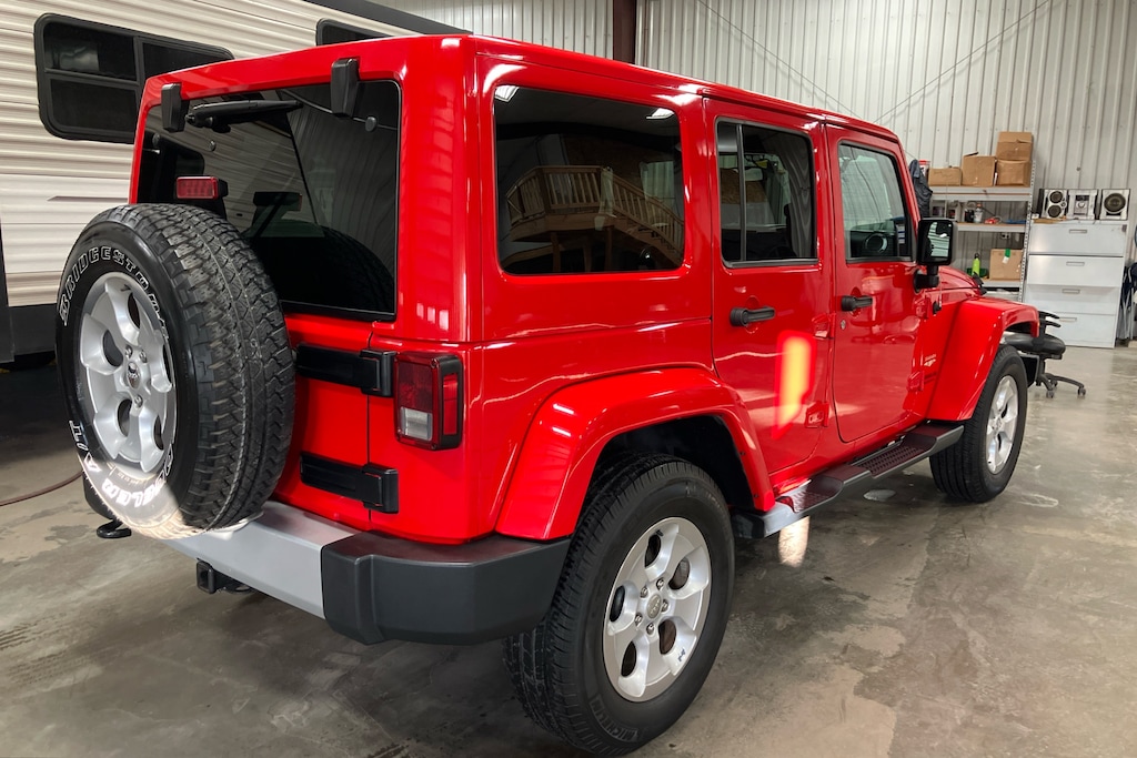 4x4, Running Boards, Convertible Hardtop, Targa Roof, Aluminum Wheels Jeep Sahara with Firecracker Red exterior and Black interior features a V6 Cylinder Engine with 285 HP at 6400 RPM*.