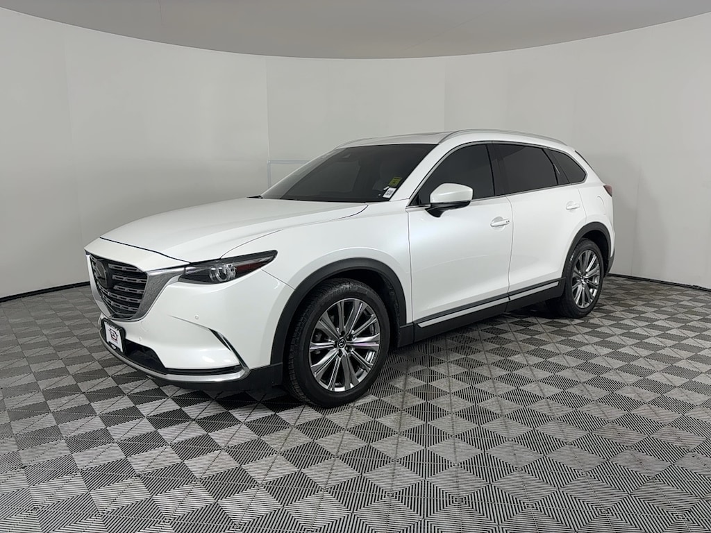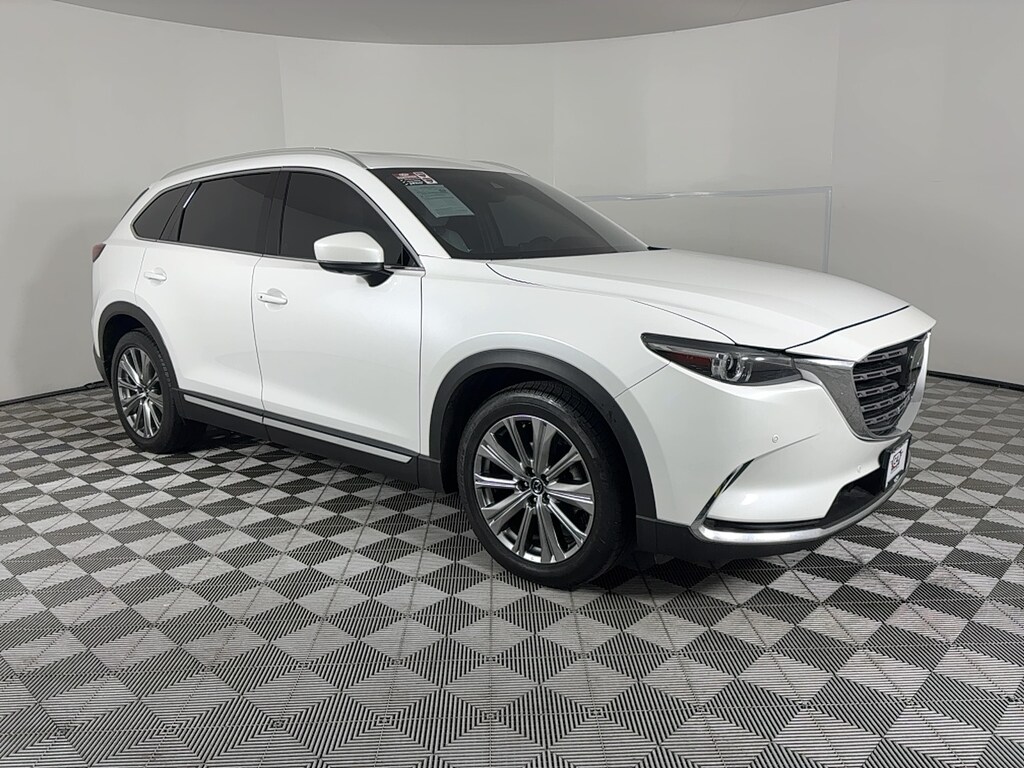 CX-9 Signature trim, Snowflake White Pearl Mica exterior and Parchment interior. FUEL EFFICIENT 26 MPG Hwy/20 MPG City! Heated Leather Seats, Moonroof, Navigation, Third Row Seat, All Wheel Drive, Power Liftgate, Captains Chairs, Aluminum Wheels, Turbo Charged. CLICK NOW! KEY FEATURES INCLUDE Leather Seats, Third Row Seat, Navigation, Sunroof, All Wheel Drive, Quad Bucket Seats, Power Liftgate, Rear Air, Heated Driver Seat, Heated Rear Seat, Cooled Driver Seat, Back-Up Camera, Turbocharged, Premium Sound System, Satellite Radio Rear Spoiler, MP3 Player, Remote Trunk Release, Privacy Glass, Keyless Entry. Mazda CX-9 Signature with Snowflake White Pearl Mica exterior and Parchment interior features a 4 Cylinder Engine with 227 HP at 5000 RPM*. EXPERTS ARE SAYING Great Gas Mileage: 26 MPG Hwy. AFFORDABLE Was $27,995. Approx. Original Base Sticker Price: $48,500*. .