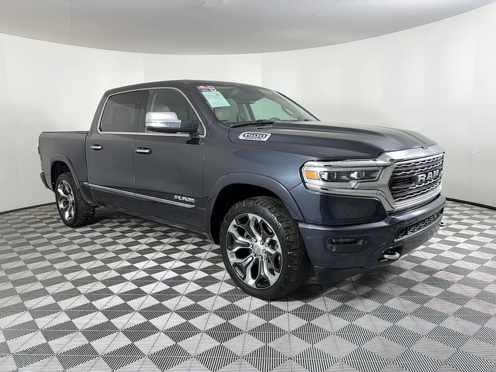 EPA 21 MPG Hwy/15 MPG City! Maximum Steel Metallic Clearcoat exterior and Indigo/Frost interior, Limited trim. Heated/Cooled Leather Seats, Moonroof, Nav System, Running Boards, Back-Up Camera, 4x4, Bed Liner, Hitch, WHEELS: 22 X 9 POLISH/PAINTED W/INS... DUAL-PANE PANORAMIC SUNROOF, ENGINE: 5.7L V8 HEMI MDS VVT, ANTI-SPIN DIFFERENTIAL REAR AXLE, TRANSMISSION: 8-SPEED AUTOMATIC (8HP7... TRI-FOLD TONNEAU COVER, LIMITED LEVEL 1 EQUIPMENT GROUP. CLICK NOW! KEY FEATURES INCLUDE Leather Seats, Navigation, 4x4, Heated Driver Seat, Cooled Driver Seat, Back-Up Camera, Running Boards, Satellite Radio, iPod/MP3 Input, Onboard Communications System, Trailer Hitch, Remote Engine Start, Dual Zone A/C, WiFi Hotspot, Smart Device Integration MP3 Player, Keyless Entry, Privacy Glass, Child Safety Locks, Steering Wheel Controls. OPTION PACKAGES LIMITED LEVEL 1 EQUIPMENT GROUP harman/kardon® 19 Speaker Premium Sound, Adaptive Cruise Control w/Stop & Go, Advanced Brake Assist, Parallel & Perp Park Assist w/Stop, Ventilated Rear Seats, Full Speed Forward Collision Warning Plus, Lane Keep Assist, WHEELS: 22 X 9 POLISH/PAINTED W/INSERTS Tires: 285/45R22XL BSW All Season, DUAL-PANE PANORAMIC SUNROOF LED Dome/Reading Lamp, Dome Dual LED Reading Lamp, ENGINE: 5.7L V8 HEMI MDS VVT Active Noise Control System, Heavy Duty Engine Cooling, GVWR: 7,100 lbs, Dual Rear Exhaust w/Bright Tips, Hemi Badge, 220 Amp Alternator, TRI-FOLD TONNEAU COVER, ANTI-SPIN DIFFERENTIAL REAR AXLE, TRANSMISSION: 8-SPEED AUTOMATIC (8HP75). Ram Limited with Maximum Steel Metallic Clearcoat exterior and Indigo/Frost interior features a 8 Cylinder Engine with 305 HP at 6400 RPM*. EXPERTS REPORT Edmunds.com explains It feels strong off the line, and it serves up excellent roll-on acceleration when its time to merge or make a pass.. Great Gas Mileage: 21 MPG Hwy. AFFORDABLE Reduced from $37,995. Approx. Original Base Sticker Price: $57,000*. .