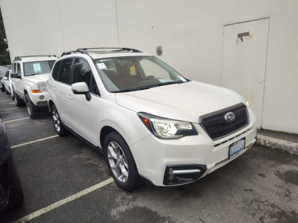 Crystal White Pearl exterior and Saddle Brown interior. Heated Leather Seats, NAV, Sunroof, Satellite Radio, Premium Sound System, Power Liftgate, Alloy Wheels, Panoramic Roof, POPULAR PACKAGE #2, EYESIGHT & NAVIGATION SYSTEM W/SADDLE... All Wheel Drive. AND MORE! KEY FEATURES INCLUDE Leather Seats, Sunroof, Panoramic Roof, All Wheel Drive, Power Liftgate, Heated Driver Seat, Premium Sound System, Satellite Radio, Aluminum Wheels, Keyless Start, Dual Zone A/C, Heated Seats, Heated Leather Seats. Rear Spoiler, Keyless Entry, Remote Trunk Release, Privacy Glass, Steering Wheel Controls. OPTION PACKAGES EYESIGHT & NAVIGATION SYSTEM W/SADDLE BROWN INT EyeSight System, adaptive cruise control, low speed pre-collision braking control and vehicle lane departure warning, Reverse Automatic Braking System (RAB), High Beam Assist (HBA), Radio: Subaru Starlink 7.0 Multimedia Nav System, AM/FM stereo HD radio w/single-disc CD player w/MP3/WMA/CRR/RW file capability, 7.0 LCD screen, voice activated control, Bluetooth® audio streaming connectivity, Bluetooth® hands-free phone connectivity, Bluetooth® hands-free text messaging connectivity, iPod control capability, rear-vision camera, SMS text messaging capability, SiriusXM All Access radio (subscription required), SiriusXM Traffic (subscription required), SiriusXM Travel Link (subscription required), smartphone integration: AHA, MirrorLink, Pandora, POPULAR PACKAGE #2 Auto-Dimming Mirror w/Compass & HomeLink, Exterior Auto-Dimming Mirror w/Approach Light, Blind Spot Detection, Rear Seat Back Cargo Net, Rear Bumper Cover. Subaru Touring with Crystal White Pearl exterior and Saddle Brown interior features a 4 Cylinder Engine with 170 HP at 5800 RPM*. EXPERTS ARE SAYING With a fairly plush ride, the Forester is a comfortable all-day cruiser. Even full-throttle acceleration doesnt significantly disturb the Foresters cabin, which remains impressively impervious to tire, wind and engine noise. -Edmunds.com. Great Gas Mileage: 32 MPG Hwy. PRICED TO MOVE Reduced from $19,995. Approx. Original Base Sticker Price: $31,300*. .